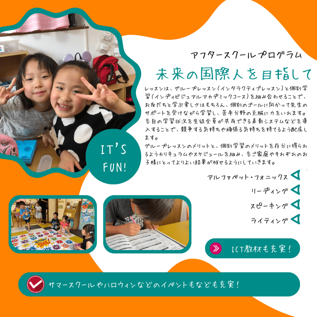 アルファベットフォニックスも基礎からしっかり学習し、小学校までに基本のフォニックスを習得します。